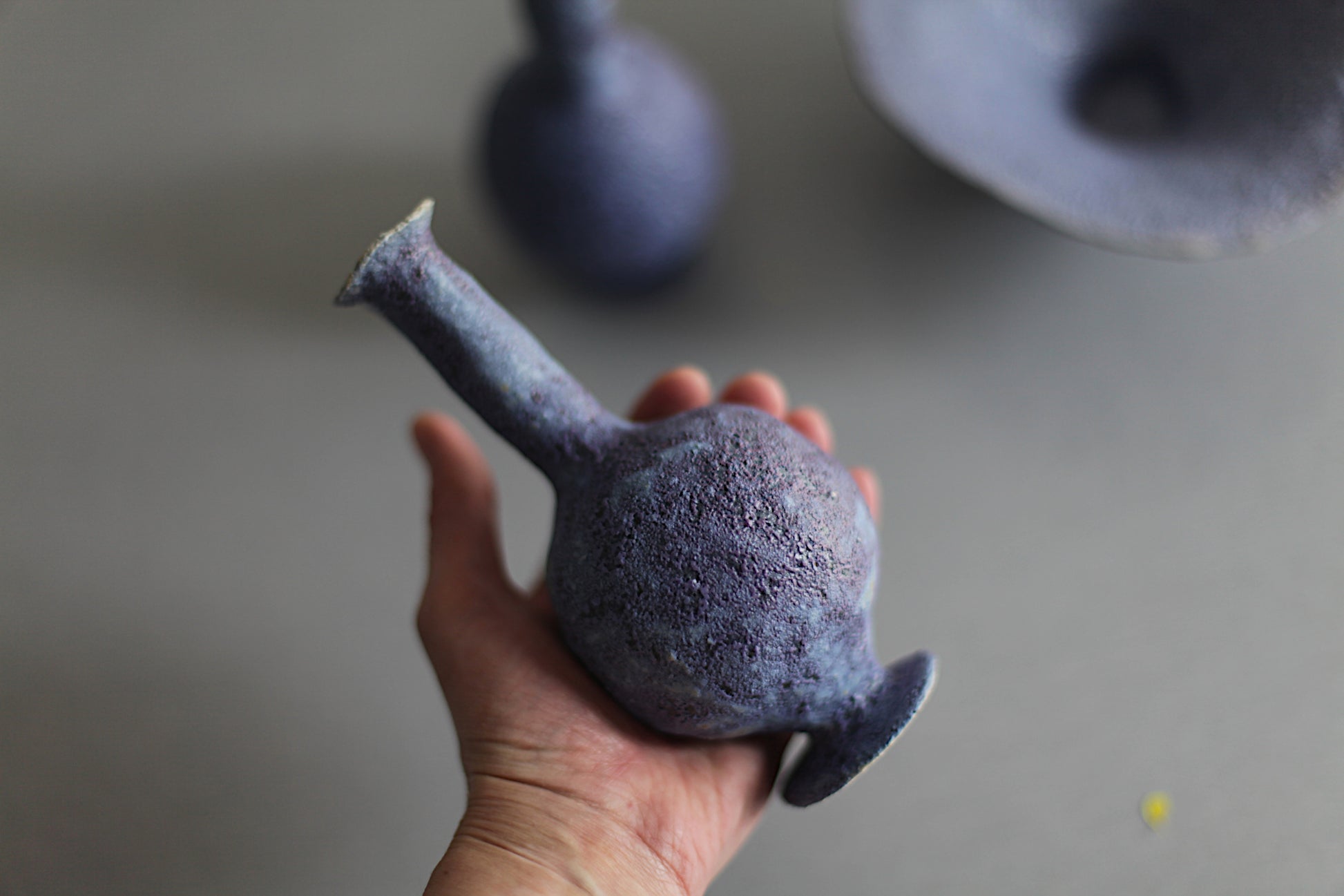 A hand-sculpted stoneware bottle that merges potion-bottle mystique with Mediterranean coastal magic. Its elongated neck and deliberately textured surface speak to raw, unrefined artistry—no two surfaces identical, no two pieces the same. Wrapped in the artist's proprietary blue glaze evoking deep sea waters, this 16cm-tall, 7.5cm-wide vessel is equal parts functional and enchanting. Fully glazed inside and watertight, it holds water and whispers of seaside sorcery. Each bottle is a singular creation, signed by the maker's hand. The exact piece shown here is yours—mysterious, imperfect, utterly magnetic.
